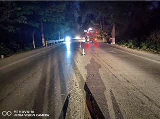 时间2025年4月28日,地点文峰中桥国道k2376+800处突发因大型货车载运石料不当或车辆未加盖篷布,导致大量碎石散落路面,覆盖面积500米,影响夜间车道通行